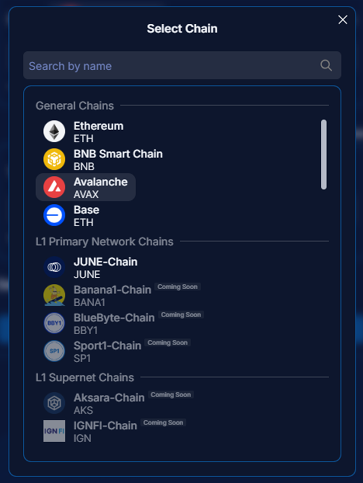 * Choose the blockchain network **(ETH, BASE, BNB, or AVAX)** where your tokens are currently stored